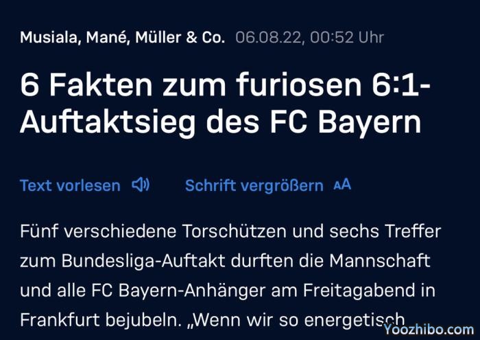 24直播网08月06日讯 今日,拜仁德甲首轮作客6-1大胜法兰克福,拜仁官网也统计了多项相关数据: