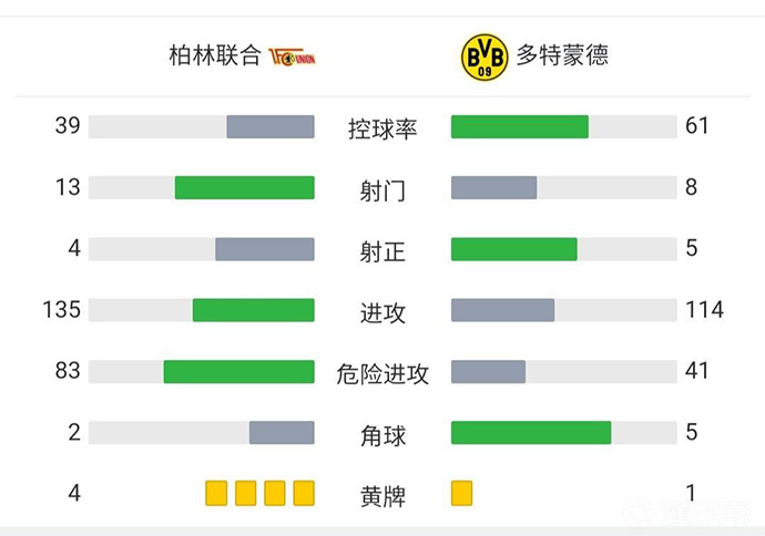第71分钟,多特扩大比分!布兰特挑传禁区内贝林厄姆底线传中马伦抢射被卢特扑出随后格雷罗补射球进。多特客场3-0柏林联。