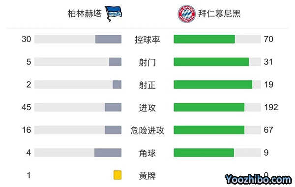 全场比赛结束,最终拜仁4-1击败柏林赫塔。