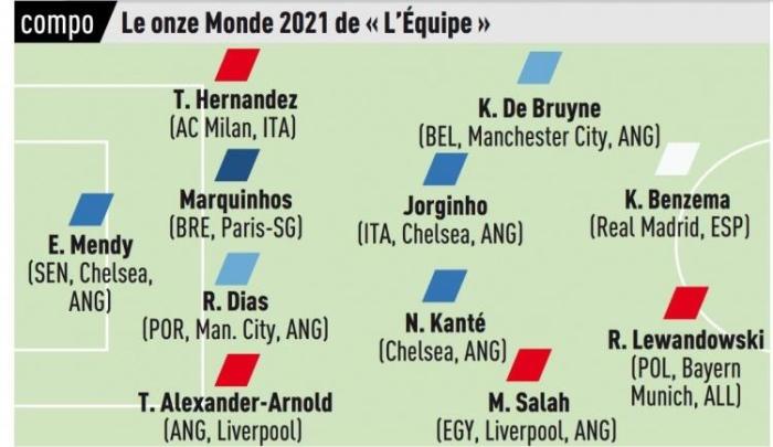 24直播网01月05日讯 ,《队报》评选了2021年最佳阵容,其中本泽马、莱万搭档双前锋,梅西、C罗无缘入选。
