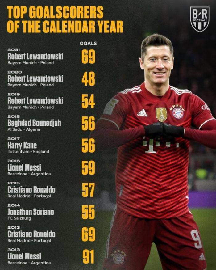 24直播网01月01日讯 露天看台盘点了过去10年的自然年射手王,莱万已经连续三年排名第一,而梅西和C罗则两次上榜。