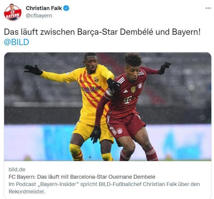 《图片报》表示,法国边锋金斯利-科芒与拜仁的合同将在2023年夏天到期,但球员目前还没有续约。如果他在明年夏天还不改变自己的想法,拜仁将考虑免签登贝莱。