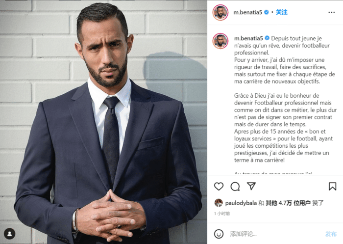 官方:前拜仁、尤文中卫贝纳蒂亚宣布退役