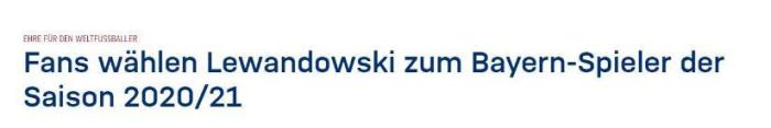24直播网讯 拜仁赛季最佳球员由球迷投票选出,莱万以76.8%的超高得票率,力压队友托马斯-穆勒、基米希等人成功当选。