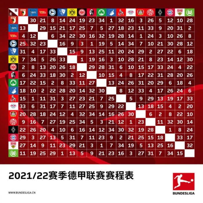 拜仁对阵多特的德国国家德比将在第14轮(多特主场)和第31轮(拜仁主场)进行,时间暂定为2021年12月5日和2022年4月24日。