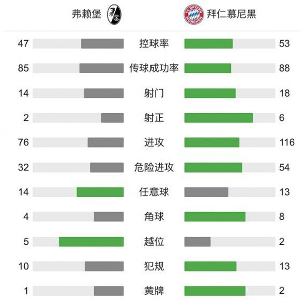 全场比赛结束,拜仁2-2战平弗莱堡。