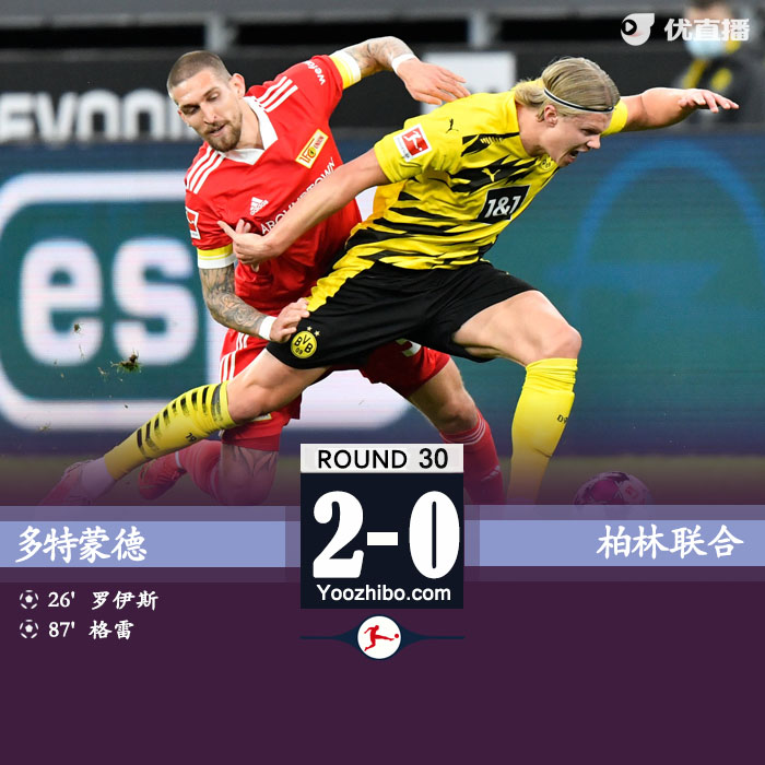 多特蒙德2-0柏林联合 哈兰德点球被扑罗伊斯破门