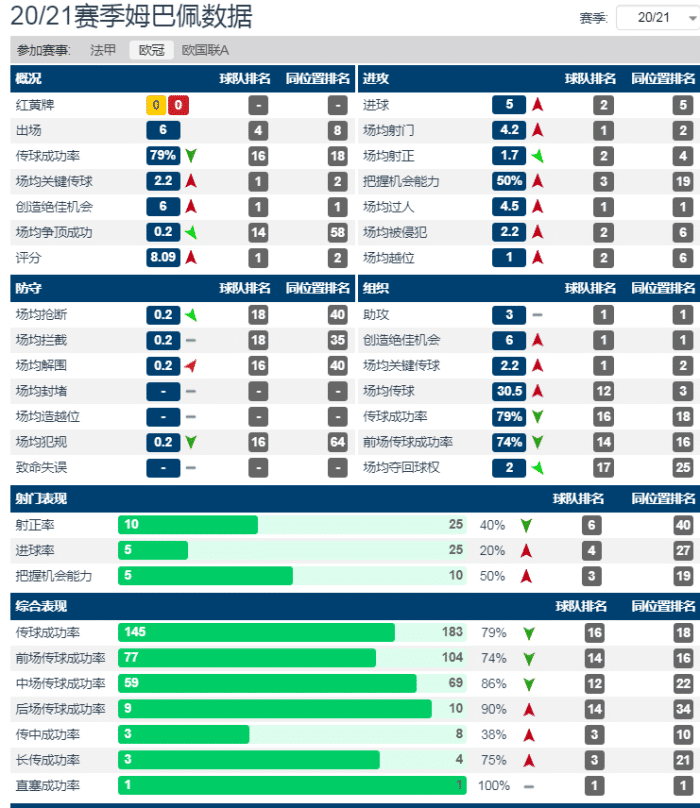 考虑到哈兰德上赛季效力过两支球队,具体对比一下两人本赛季的数据。在联赛赛场上,姆巴佩出场19次,打进18球助攻6次,球员场均射门3次,场均射正1.6次,把握机会能力62%,场均过人2.9次,场均关键传球1次。而且姆巴佩的传球成功率很高,他的前场传球成功率高达72%,中场传球成功率高达93%。长传成功率也高达50%。这是一个中场球员应有的数据。