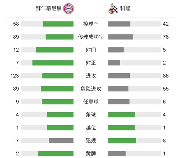 全场比赛结束,拜仁5-1击败科隆终结联赛两轮不胜。