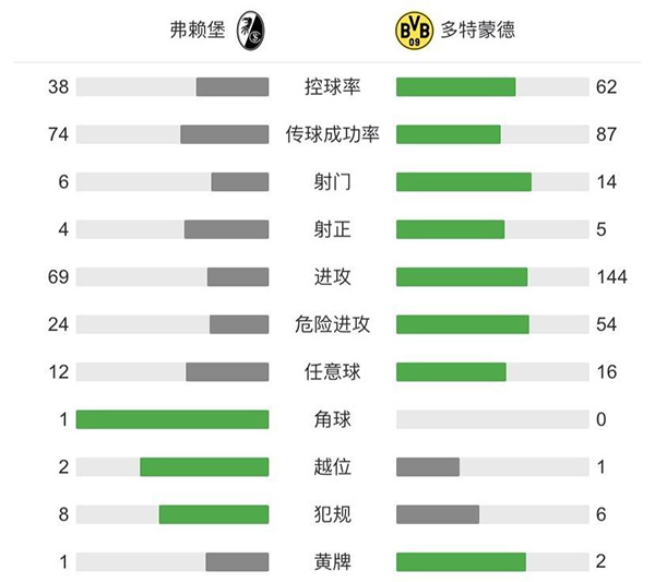 全场比赛结束,最终多特1-2不敌弗莱堡。