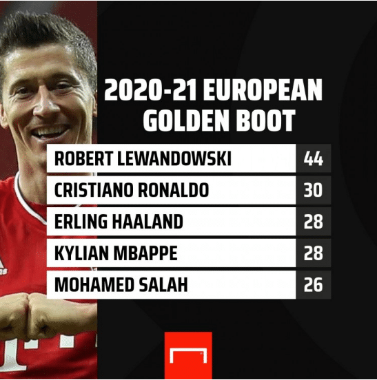 欧战金靴实时排名:莱万独一档,C罗第四,梅西排名第29!