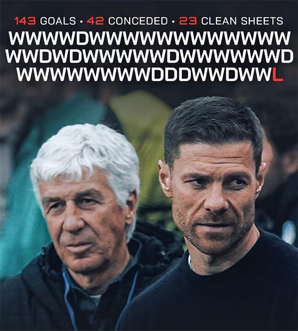惨痛输掉这场决赛后,勒沃库森遭赛季首场失利,本赛季不败场次定格在51场(42胜9平)。勒沃库森也无缘本赛季第2冠,“不败三冠王”的神话就此破灭。疯狂了整个赛季的勒沃库森,倒在了赛季倒数第二场比赛上。不过即便无缘创造神话,勒沃库森这赛季的辉煌表现依然值得称赞。