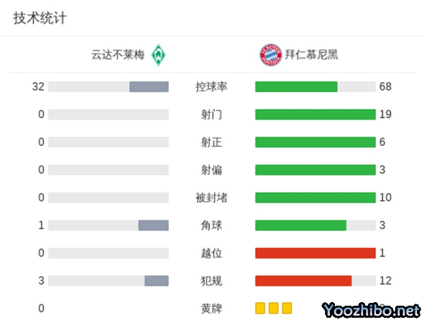 拜仁5-0不莱梅近3场狂轰20球 奥利斯2射2传不莱梅全场0射门