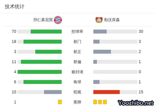 第31分钟,勒沃库森左侧角球机会,格里马尔多将球开出,第一点被解围,扎卡得球回传,安德里希远射攻破诺伊尔十指关,勒沃库森1-0拜仁。