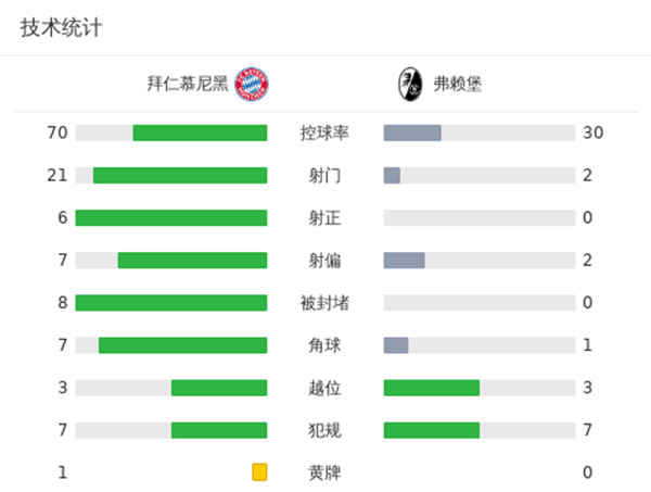 来源:24直播网10-09 04:38 24直播网讯 :北京时间10月8日23:30,德甲第7轮继续进行,拜仁慕尼黑坐镇主场慕尼黑安联球场迎战弗赖堡,本场主裁判为施罗德。上半场,科曼神仙球首开记录,萨内破门后再入一球越位无效,穆勒、凯恩献助攻。下半场,格雷茨卡中柱,科曼内切打门变线入网上演梅开二度。最终,拜仁主场3-0轻取弗赖堡。