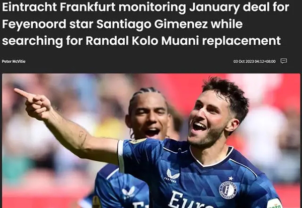 德天空记者:法兰克福正在考虑一月份引进费耶诺德前锋吉梅内斯