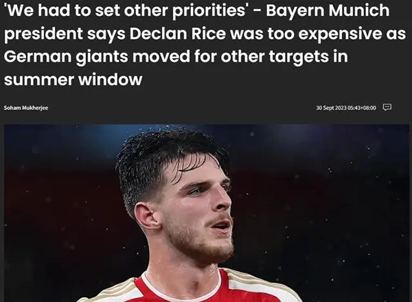 拜仁主席:赖斯的身价太高了 因此在夏天选择了其他目标
