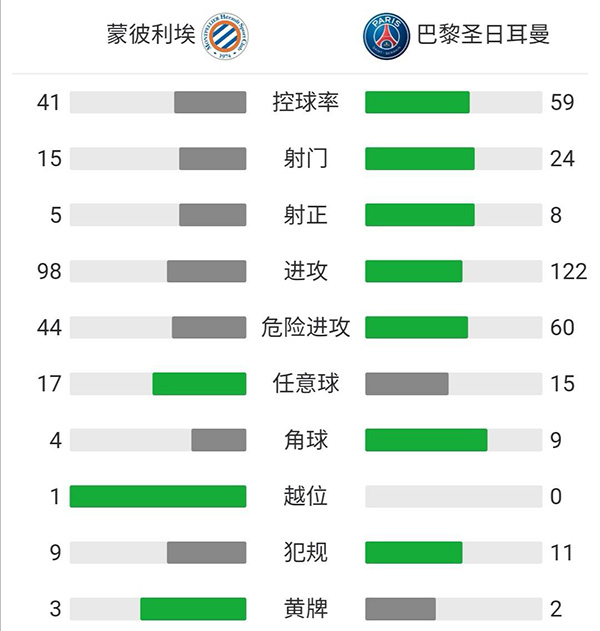 全场比赛结束,巴黎2-2点球6-5淘汰蒙彼利埃。