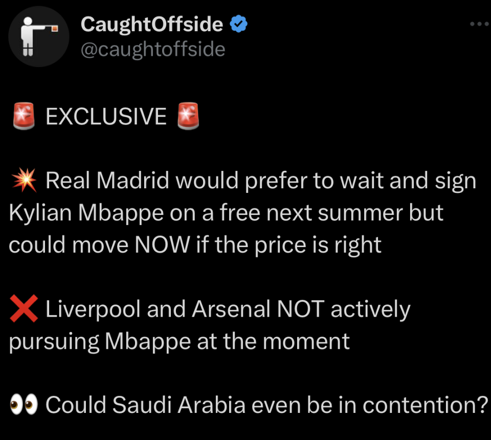 沙特公共投资基金(PIF)很乐意签下姆巴佩一年,即使明白他在此后会前往皇马,或其他地方效力。不过姆巴佩本人还没有对这一提议有所回应,他本人显然更希望参加欧冠联赛,而不是在当打之年,中断一个赛季离开欧洲、去沙特联赛淘金。