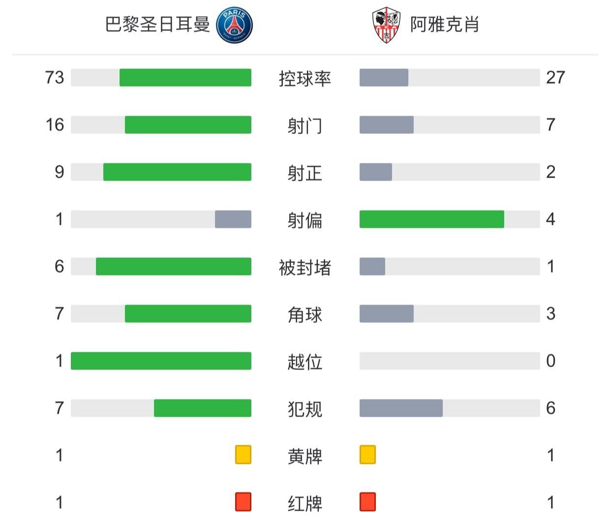 最终巴黎主场5-0大胜阿雅克肖,巴黎近6轮取得5场胜利。