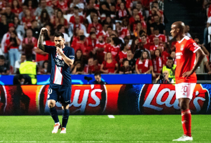 比赛中,梅西继续大放异彩,主导了大巴黎的整个中前场。比赛第21分钟,双巨内马尔、梅西一同建功,由内马尔在禁区弧顶为梅西送出一脚助攻,梅西斜插得球顺势不停球直接兜射破门,皮球直挂球门左侧死角,大巴黎1-0领先;比赛第40分钟,恩佐-费尔南德斯传中造险,禁区内的达尼洛-佩雷拉出现致命失误,直接将球碰进自家球门,曾2夺欧冠冠军的老牌豪门本菲卡1-1幸运追平比分。