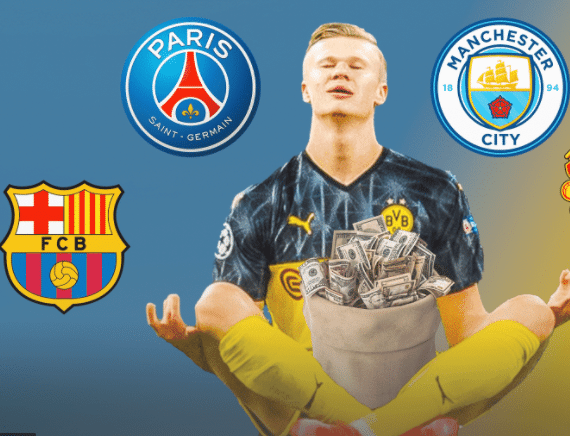 哈兰德预计将在今夏转会离开多特蒙德,皇马、巴萨、曼城和大巴黎都在追求他。