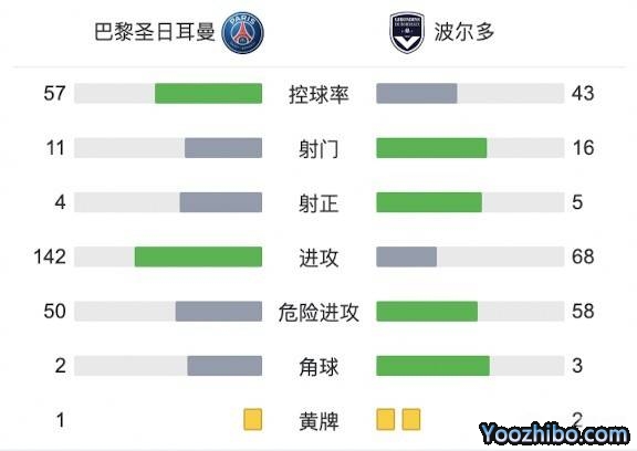 全场比赛结束,巴黎主场3-0波尔多!