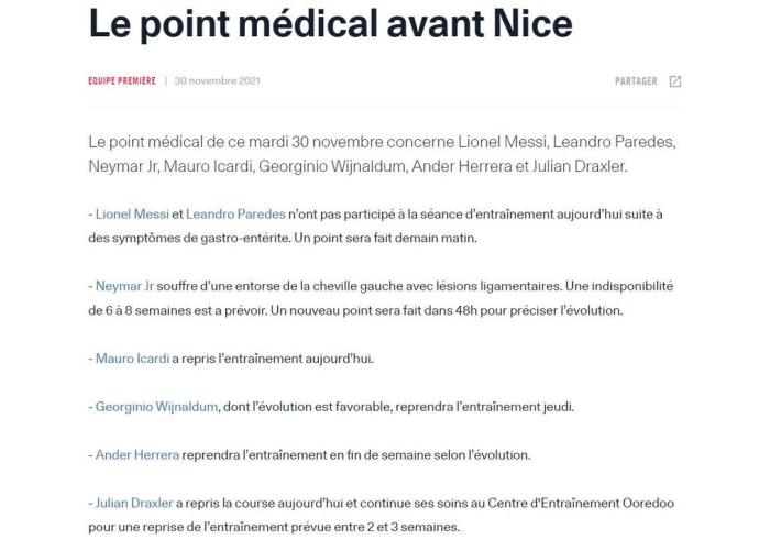 24直播网讯 据巴黎圣日耳曼官方消息,梅西和帕雷德斯因为肠胃炎缺席了今天的训练。