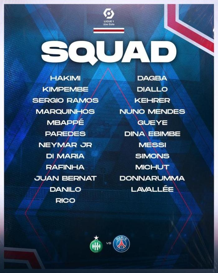 24直播网讯 北京时间11月28日,巴黎官方公布对阵圣埃蒂安的大名单,西班牙中卫拉莫斯复出入选。