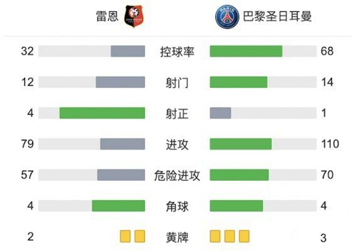 比赛伤停补时阶段,禁区内姆巴佩持球,没有选择传给队友,强突被解围。最终,巴黎圣日耳曼客场0-2雷恩!