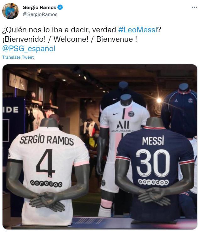 今天,拉莫斯在推特上晒出两人的巴黎球衣,并写道:“谁能想到呢?欢迎你!”