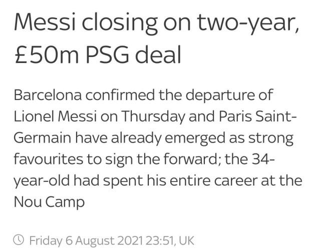 根据此前《天空体育》记者Kaveh Solhekol的说法,巴黎圣日耳曼将与梅西签订一份为期两年的合同,税后年薪为5000万(每年 2500万)英镑。这笔交易对卡塔尔王室来说将是巨大的推动力,因为他们将在明年举办世界杯。