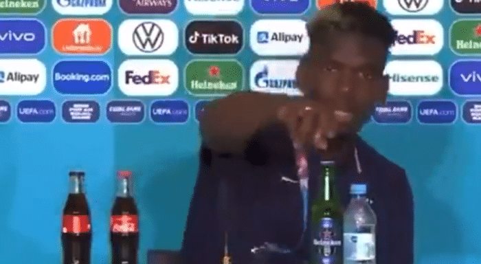 学习C罗? 博格巴发布会上拿开桌上的啤酒