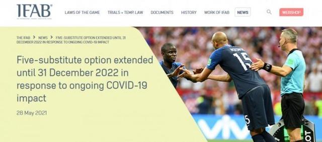 据悉,在今天召开的国际足联理事会IFAB视频会议上,成员们同意延长第三法案的临时修订条例,即允许每场比赛最多使用5名替补球员,该规定适用于2022年12月31日之前完成的所有顶级比赛。