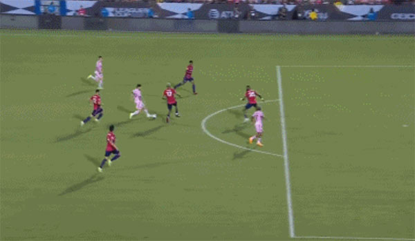 第34分钟,梅西的直塞让队友再度形成单刀,这次泰勒没有越位,可惜他的射门被门将扑出,梅西禁区跟进挑射一补,被对手门线解围。