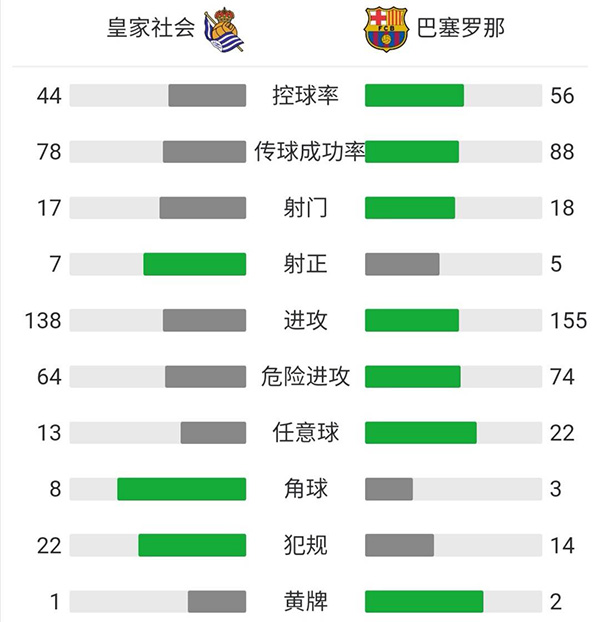 第39分钟,巴萨打破场上僵局!布莱斯维特禁区前直塞,格列兹曼启动杀入禁区后传中,德容中路跟进头球攻门得手,巴萨1-0领先皇家社会。