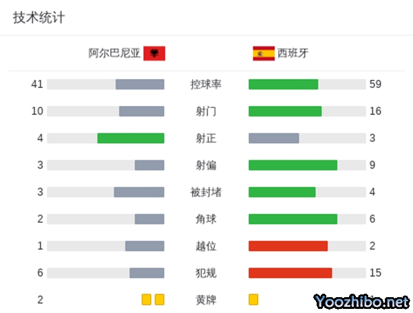 西班牙1-0阿尔巴尼亚小组赛全胜头名出线 阿尔巴尼亚垫底