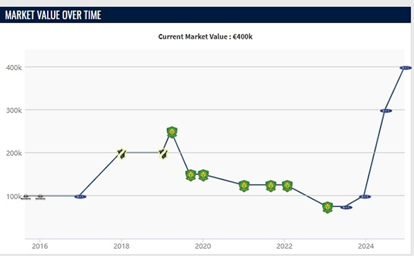 侯永永最新身价在国内球员中,已经追平了程进、王振澳、谢鹏飞等现役国脚,比曹永竞、汪海健等伊万科维奇青睐的爱将还要高。