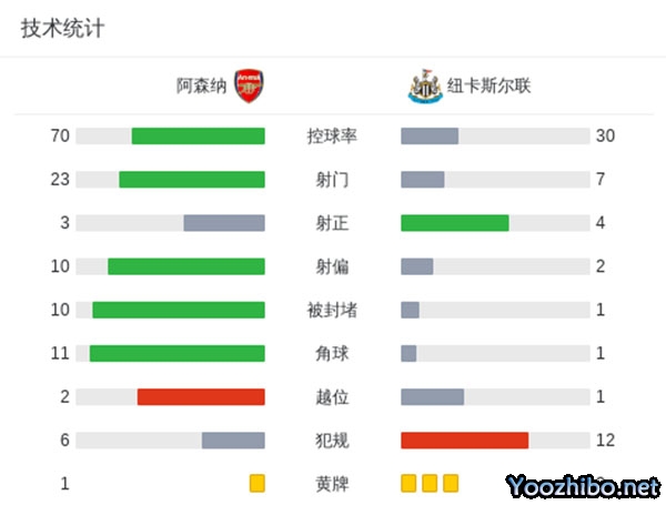 阿森纳主场0-2纽卡失先机 马丁内利中柱哈弗茨失良机