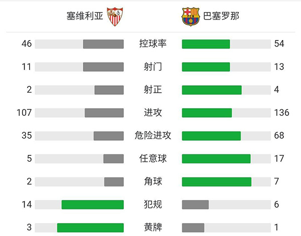 全场比赛结束,巴塞罗那客场0-2不敌塞维利亚。