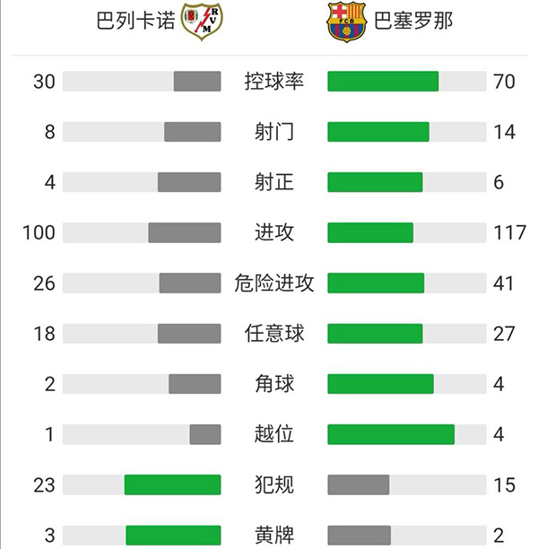 全场战罢,最终,巴萨2-1巴列卡诺。