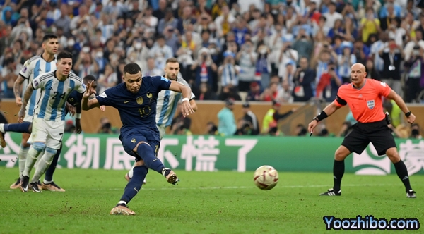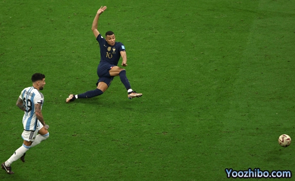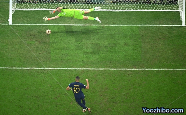 眼看比赛即将结束,加时赛最后两分锺,姆巴佩禁区前远射打在劳塔罗手臂上弹出,裁判认定劳塔罗手球犯规,法国队最后时刻获得点球机会。姆巴佩顶住压力将球射向左侧,埃米利亚诺猜错方向只能眼睁睁看着皮球入网,3-3!姆巴佩上演帽子戏法帮助法国挽回一线生机。加时赛补时最后一分钟,穆阿尼单刀面对埃米利亚诺射门被后者用脚封出,法国队错失绝杀良机。两队在鏖战120分钟后依旧无法分出胜负,比赛进入残酷的点球大战。
