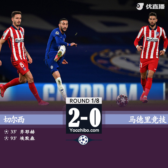 24直播网3月18日讯 北京时间3月18日4点,欧冠联赛1/8决赛次回合一场比赛在切尔西和马竞之间进行。上半场卡拉斯科禁区内倒地主裁示意没有犯规,齐耶赫反击中破门。下半场萨维奇肘击直红离场,埃默森补时建功。最终切尔西主场2-0,总比分3-0击败马竞成功晋级欧冠八强。