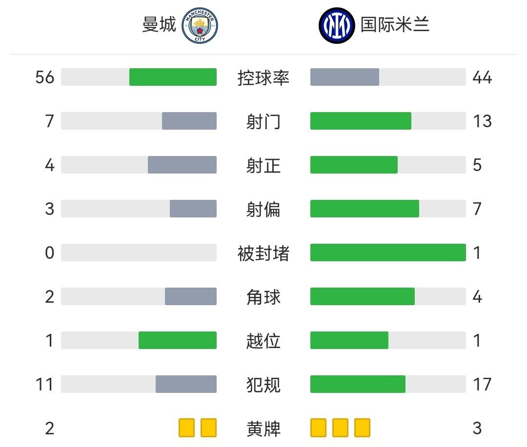 第67分钟,阿坎吉直塞,B席禁区右侧插上倒三角回敲,罗德里跟进推射得手,曼城1-0国际米兰!