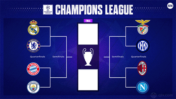 24直播网讯04月19日 欧冠1/4决赛次回合,皇马客场2-0切尔西晋级,AC米兰客场1-1那不勒斯晋级。欧冠半决赛,皇马将对阵拜仁vs曼城的胜者,米兰将对阵国米vs本菲卡的胜者。欧冠最新赔率显示,曼城最终夺得冠军的可能性最大。