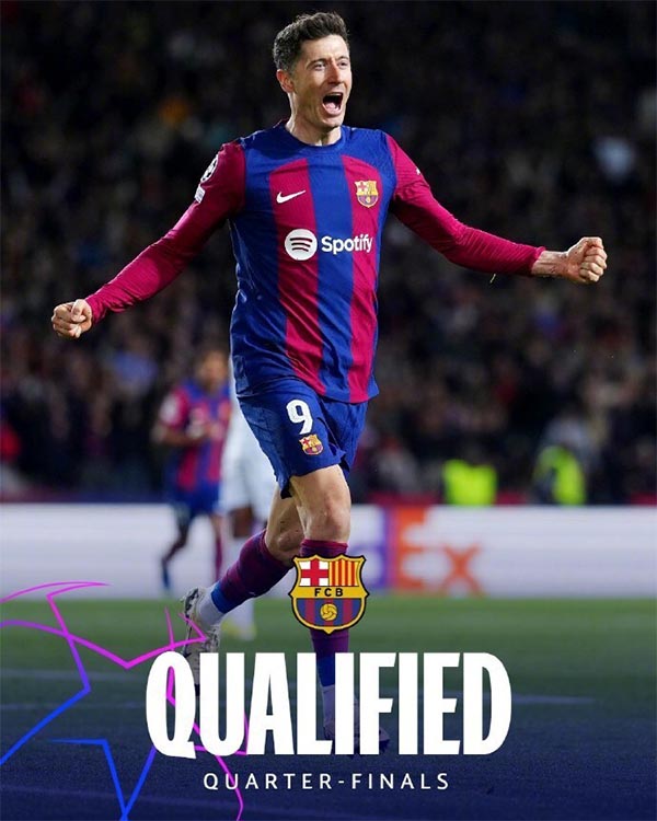 这也是巴萨时隔4年后,再次重返欧冠8强。2019-20赛季,巴萨正是淘汰那不勒斯后跻身8强。不过打进8强后,巴萨2-8输给了拜仁无缘4强。而过去3个赛季,巴萨尽管都打进欧冠小组赛,但2020-21赛季止步16强。2021-22和2022-23赛季,巴萨则是耻辱性的小组出局。这一次,哈维终于率队完成突破。