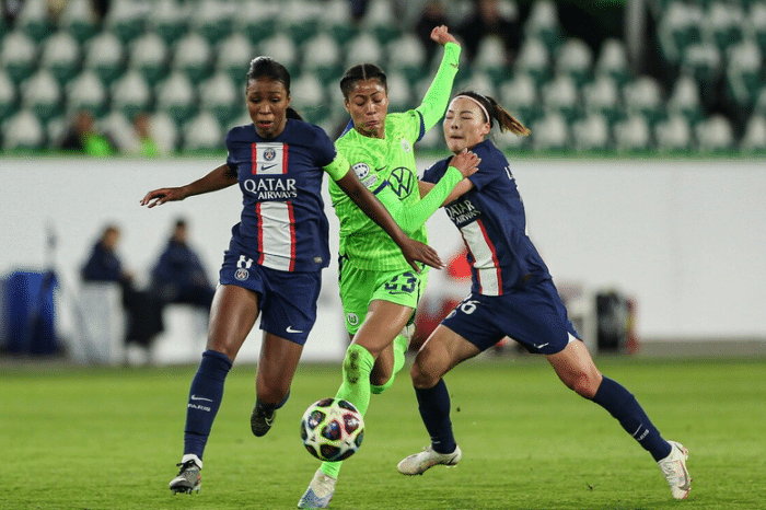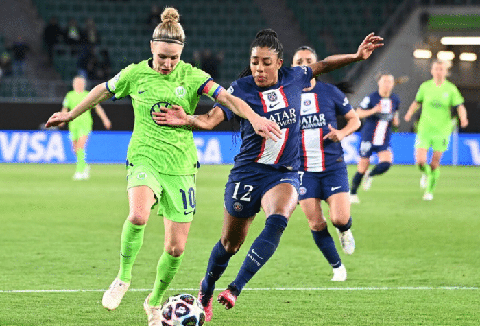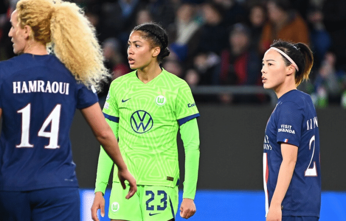 沃尔夫斯堡女足是德甲第二名,目前在德甲14胜2负,状态相对稳定,此役与大巴黎直接对攻,阵型为4231。比赛中,两队势均力敌,大巴黎有机会早早追平比分,然而运气不在她们这一边。比赛第12分钟,迪亚尼进球因为犯规在先进球无效;比赛第20分钟,沃尔夫斯堡率先进球,劳赫助攻亚历山德拉-波普破门,大巴黎总比分0-2落后。