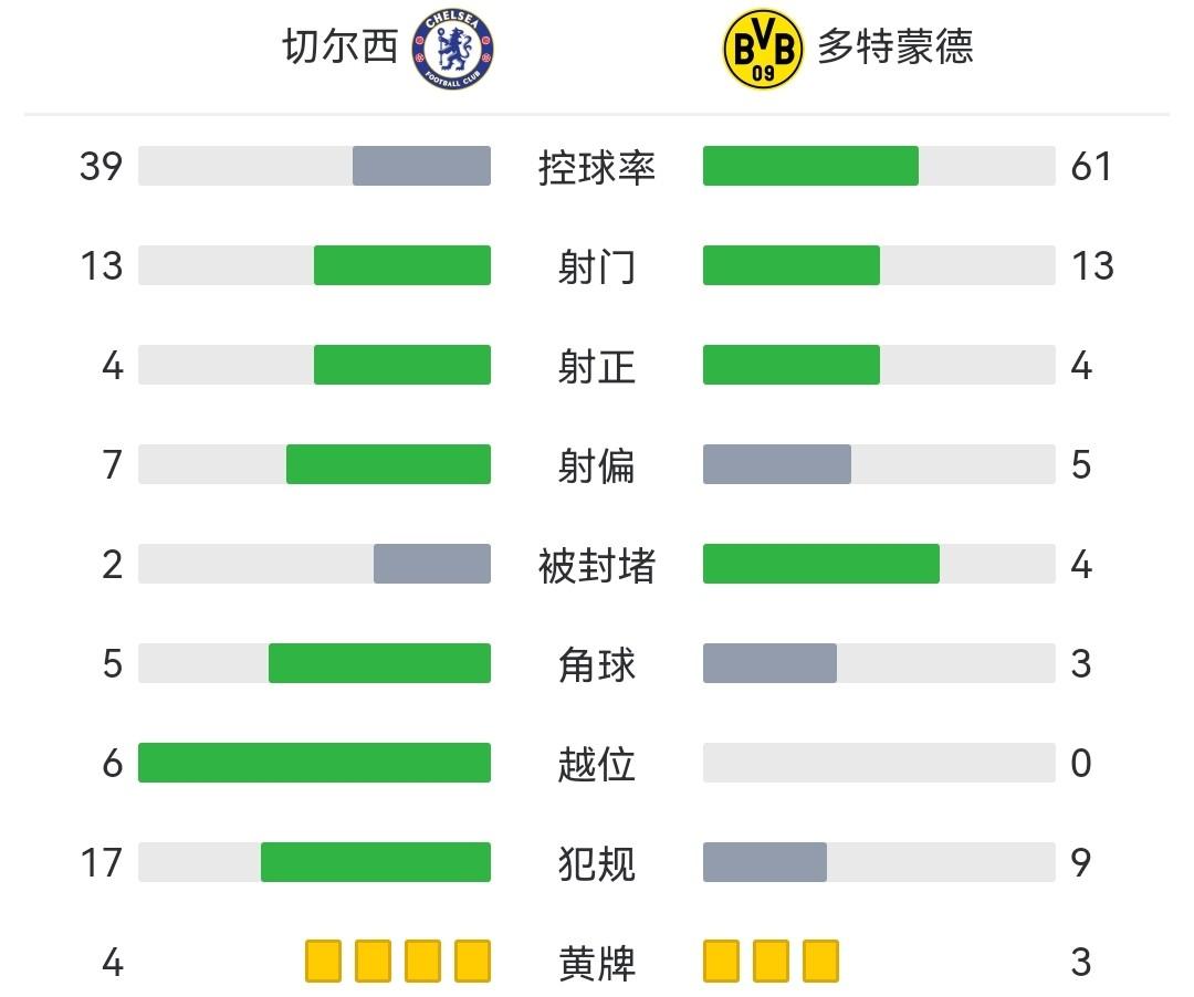 全场比赛结束,切尔西2-0多特蒙德,总比分2-1晋级八强!