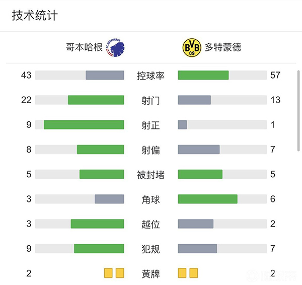 来源:24直播网11-03 08:27 24直播网讯:北京时间11月3日凌晨4点,欧冠小组赛第6轮一场焦点战役在帕尔肯体育场打响,哥本哈根对阵多特蒙德,本场比赛当值主裁判为艾莉亚。上半场,小阿扎尔禁区内抽射破门。随后,克拉松倒三角助攻哈拉尔德松推射扳平比分。下半场,穆科科替补登场射门中柱而出。全场比赛结束,多特蒙德1-1哥本哈根,大黄蜂各项赛事连续5场保持不败。
