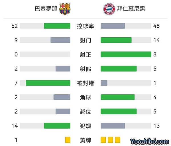 全场结束,最终拜仁3-0巴萨,提前一轮锁定小组第一。